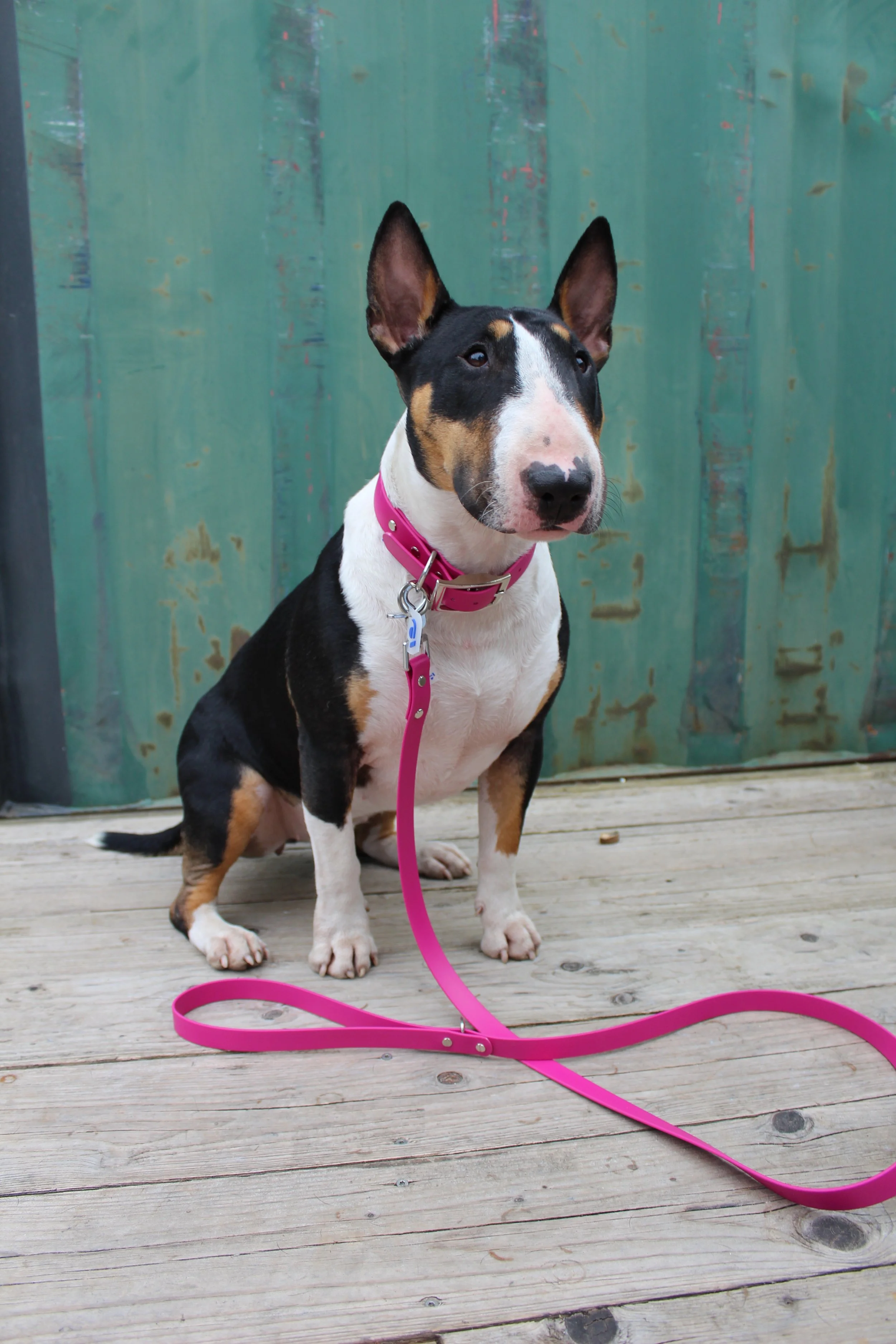 Le Biothane® est un matériau imperméable, donc facile à laver en un cou d'eau ! Il est également connu comme cuir végétal. La laisse à une largueur à définir parmi les options, quant à sa longueur tu peux la choisir dans le cadre de sélection. Les finitions sont en métal acier pour la visserie et noir pour les éléments d'accroches, le fermoir est un snap hook. Attention tout de même au petit mordeur de laisse qui risquerait d’abimer le revêtement.